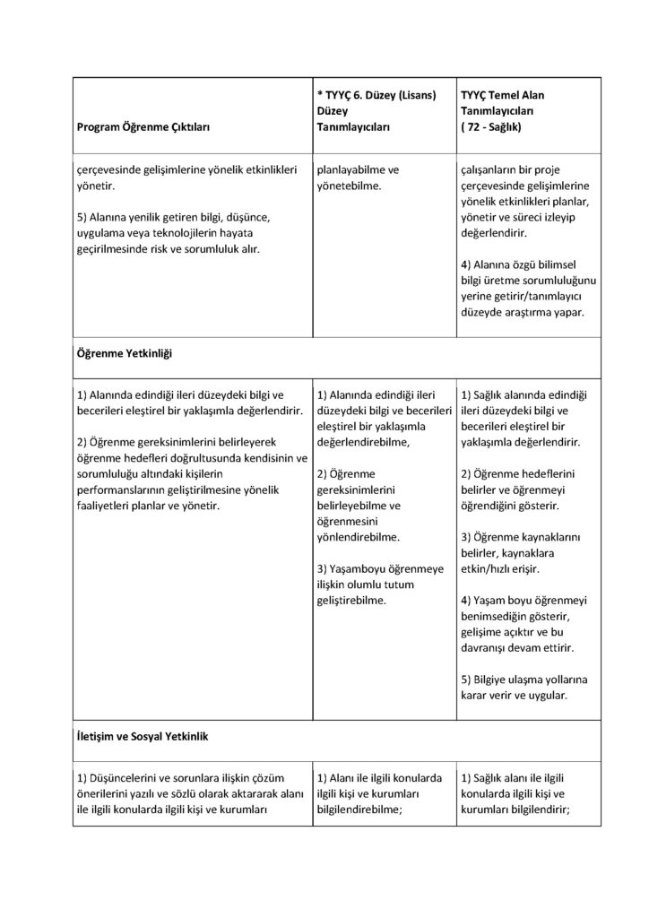 Sağlık alanındaki temel ve güncel bilgileri içeren ders kitapları, uygulama ve multimedya araç- gereçleri ile desteklenen ileri düzeydeki kuramsal ve uygulamalı bilgileri tanımlar.