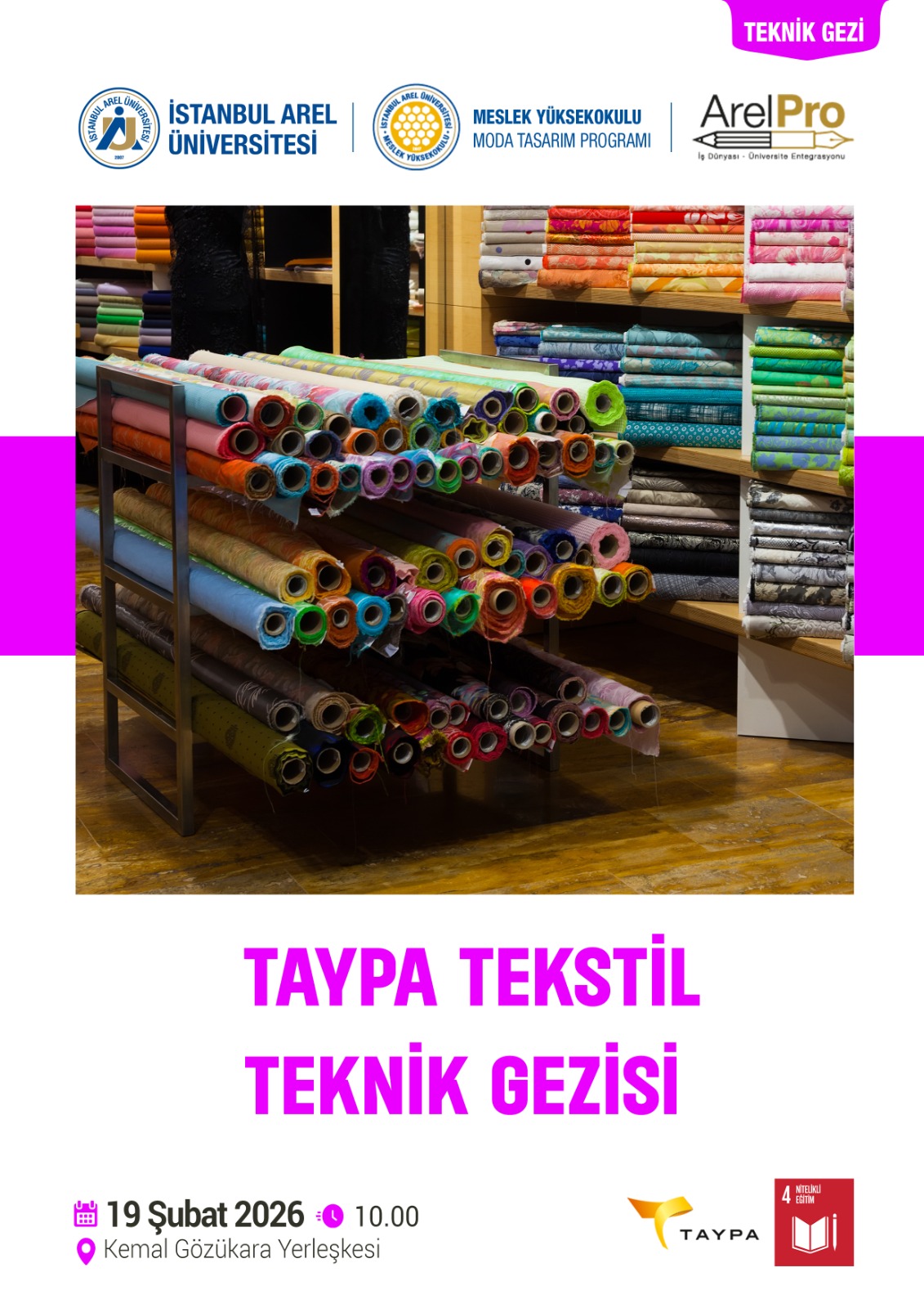 19 Şubat 2026 tarihinde 2.sınıf öğrencilerimizle ülkemizin en büyük denim üreticilerinden Taypa Tekstil firmasına bir teknik gezi düzenledik. Bu gezide denim üretim süreci, sürdürülebilir üretim yöntemleri ve işletme organizasyonu hakkında bilgi edindik.